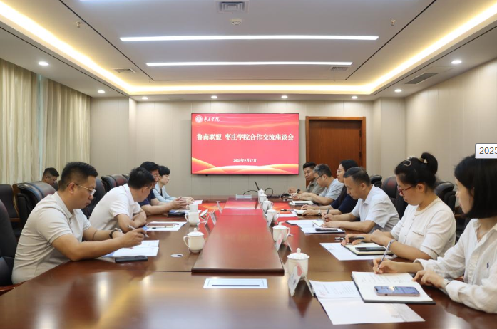 9月17日上午,我校与鲁商联盟合作交流座谈会在薛城校区明理楼532会议室举行。鲁商联盟常务副主席兼粤港澳大湾区工委主席孙明高,鲁南经贸文化交流中心主任孟召平,大湾区工委副主席兼创投工委副主席贺琦参加会议。校党委委员、副校长褚夫敏,党委委员、组织部部长、合作发展处处长袁俊现出席会议。会议由褚夫敏主持。